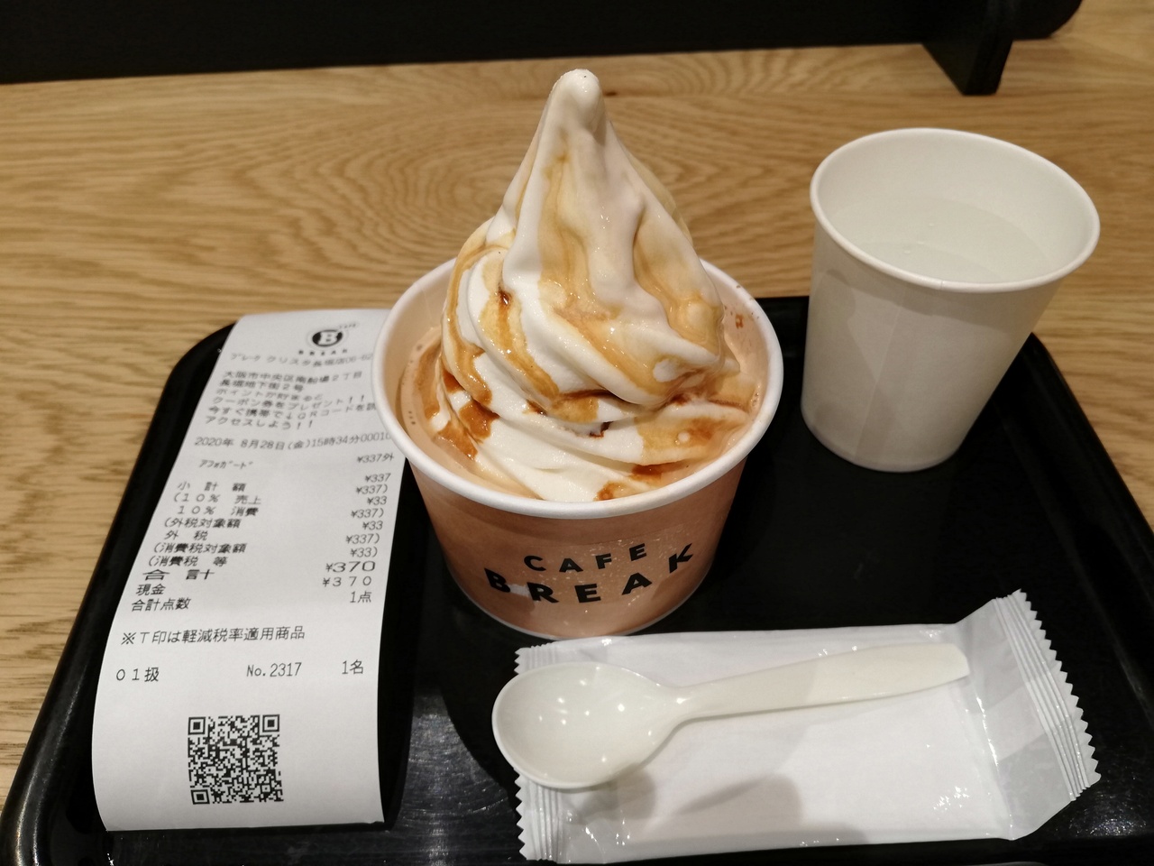 地下鉄四ツ橋駅~長堀橋駅の地下街「クリスタ長堀」の長堀橋駅方面にあります。ソフトクリームのアフォガードのトッピングを頂きました♪税込370円。甘すぎず、量もちょうど良くて美味しかったです。地下街にあるので、天気を気にせず気軽に立ち寄れるのもいいです。支払いはクレカ、PayPay等可能です。