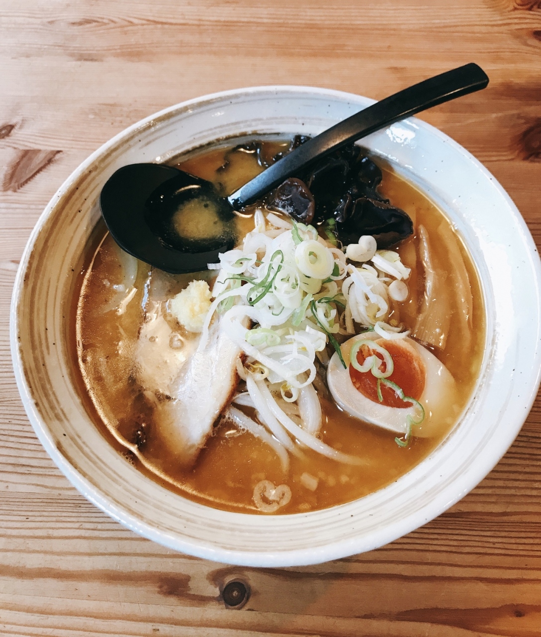 スープはとろりとした甘みのあるあるとんこつにみそと一層の熱い油が載っていて美味しいです。