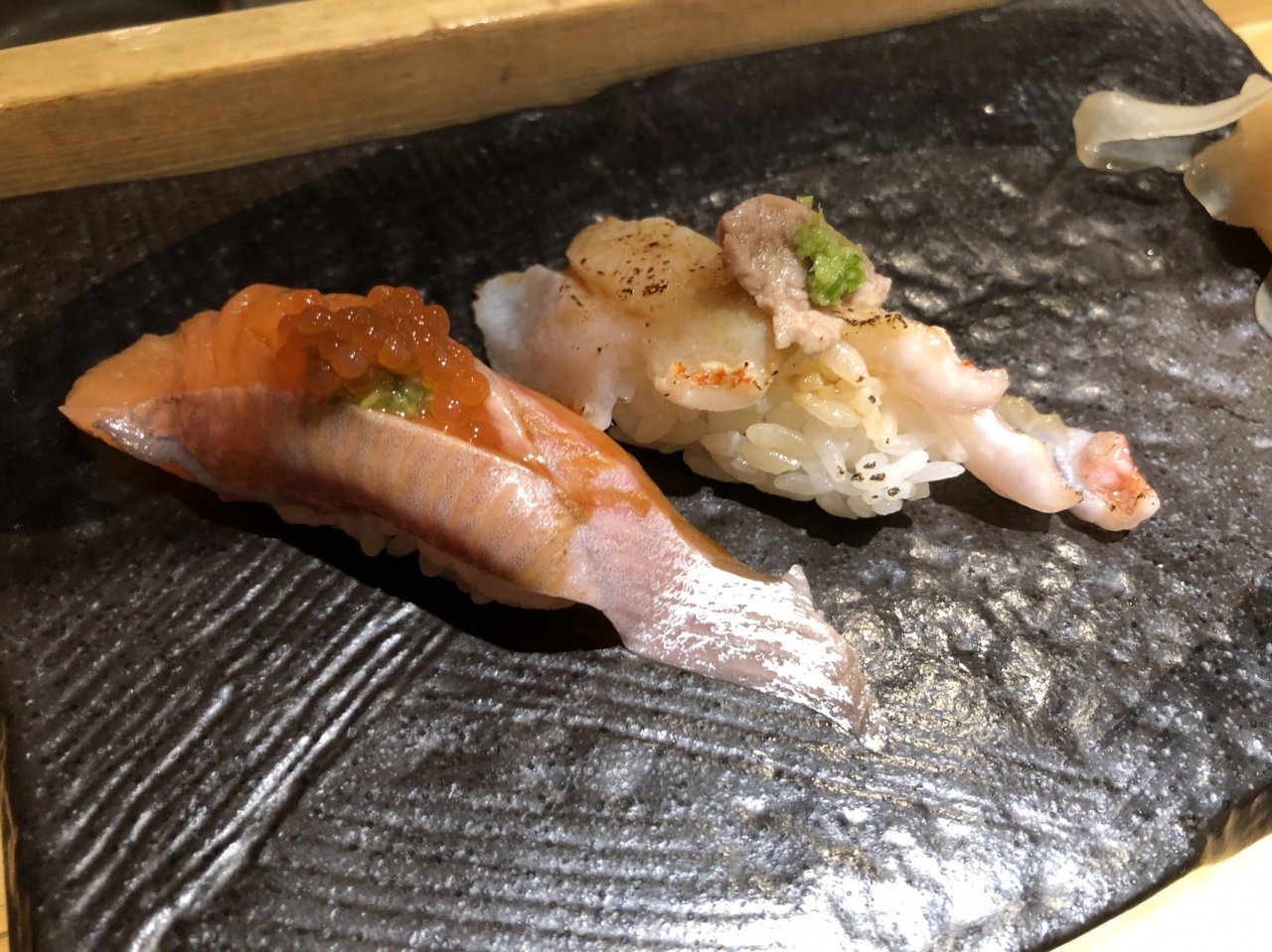 札幌に本店があり、札幌と那覇にお店を持つ寿司店。ススキの交差点近くにあるビルの1Fにあります。札幌市内には、立ち食い形式の本店と、個室もある別邸もありますが、お寿司の価格は本店のほうが安く、レベルは変わらないようです。北海道と沖縄の直送便でネタを融通しているので、道産モノはもちろん、沖縄産のものも楽しめます。一貫ずつ提供されるのもうれしい。酒の肴としてオーダーした「蝦夷あわびの丸ごと刺身」は980円。一瞬、こんなに安くと思ってしまう価格ですが、コリコリした歯ごたえが楽しめる一品。ザンギ(カスバのほっぺ)が680円で満足度高い。北海道を感じさせるほっきは美味、にしんは口の中でとろけるほど脂がのっていました。北海道でしか食べられない淡水魚のチップは臭みがなく、脂がのっていて美味。高級魚キンキもリーズナブルに楽しめるから嬉しい。日本全国のお酒を取り揃えていますが、北海道の季節限定の地酒や沖縄の無農薬のシークワーサーサワーなど、南北のお酒が楽しめるのも魅力。