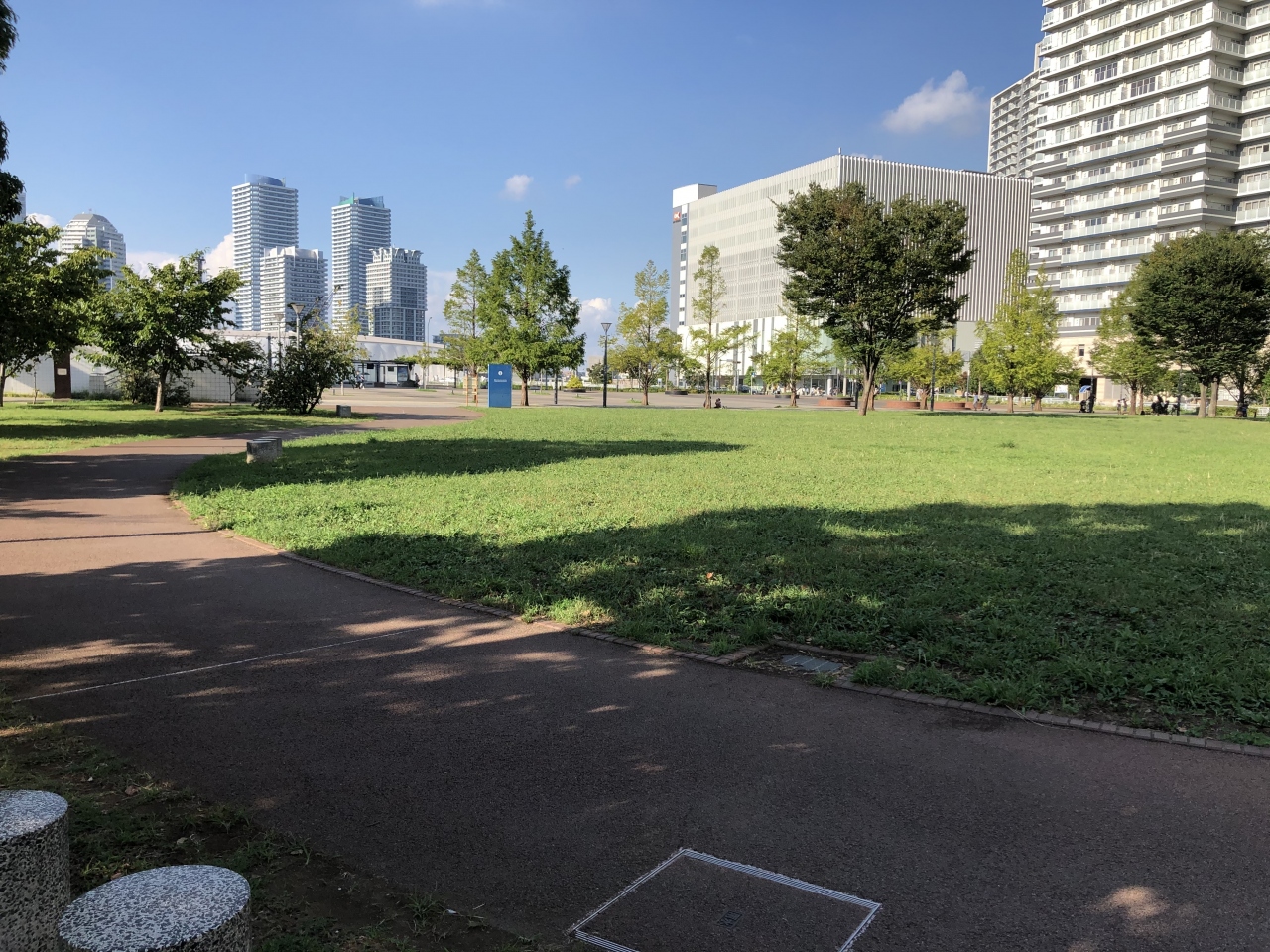 ここは中央地区51街区にあり、2007年に開園した。広々とした緑地公園で都会のオアシスだ。この地区の周辺にはまだ空き地となっている広大な土地があり、将来性が感じられ、ペデストリアンデッキなど様々の計画があるという。公園の北側には横浜アンパンマンこどもミュージアムがあり、子供の歓声が聞こえてきた。