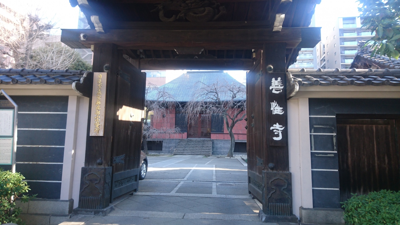 日暮里駅東改札口から南に向かって数分のところに善性寺という日蓮宗の立派な寺院がありました。1487年に創建され、6代将軍の徳川家宣の生母が葬られる将軍家ゆかりの寺院です。目の前には正岡子規も買いに来たという団子屋が今もありますので、参詣のついでにお勧めです。