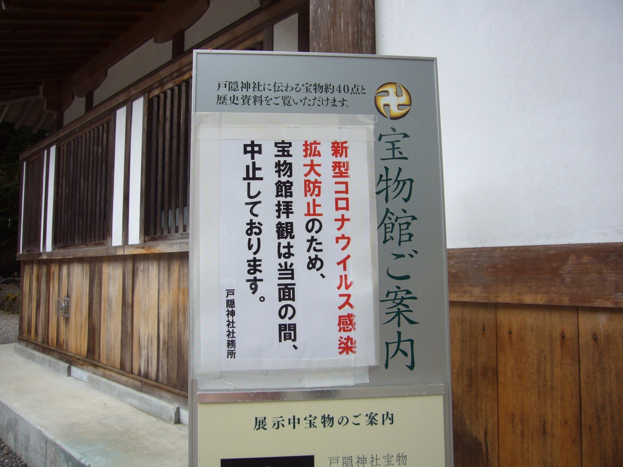戸隠五社のメインです。周辺もそば屋などがたくさんあり、一番賑やかです。社務所もここにあります。三本杉は樹齢が800年を超えるとのことです。宝物館は現在コロナの影響で閉館しています。鳥居は工事中でしたが、その後新しい鳥居が建ったようです。