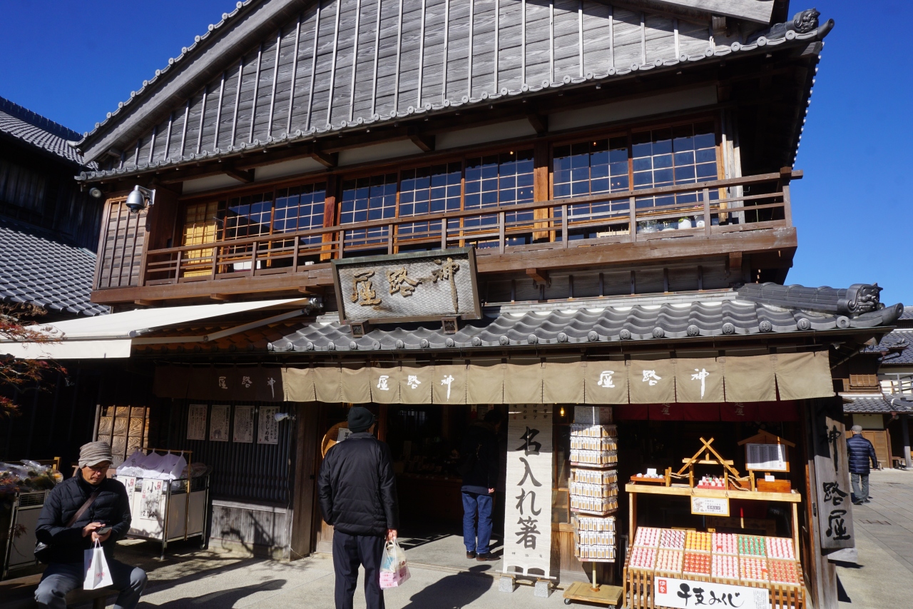 おかげ横丁には神棚を扱うお店が二軒あって、宮忠とこの神路屋。ただ、こちらは、もう少しお土産物屋さんの要素が広がっていて、お箸やかわいらしいポチ袋なんかも目につきます。こちらは店内が広いのでそうした展開ができているのかなとも思います。