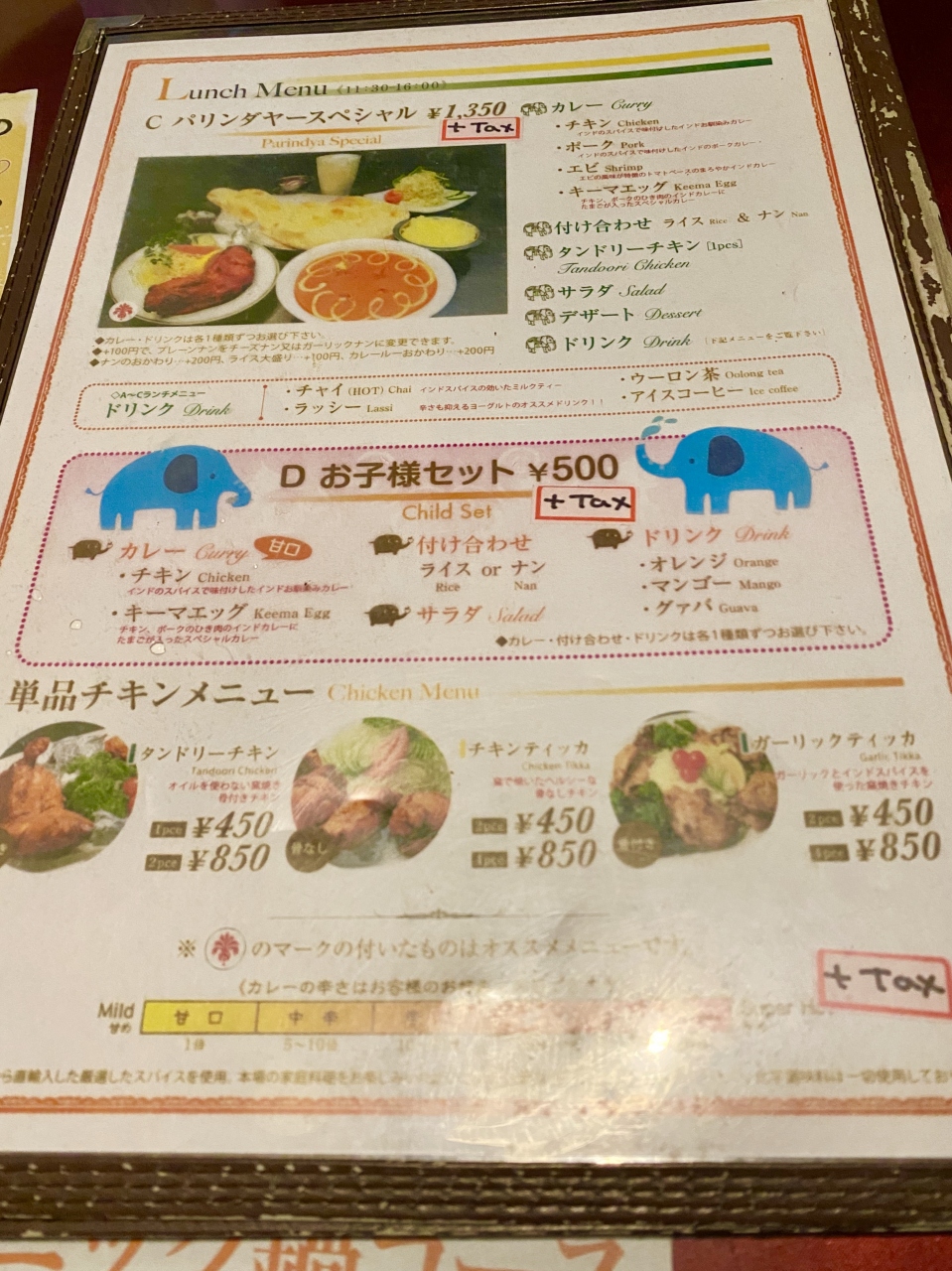 ランチで行きましたが、サラダやドリンクがついて、ご飯かナンが選べるセットメニューが色々とあって選択肢が多いです。