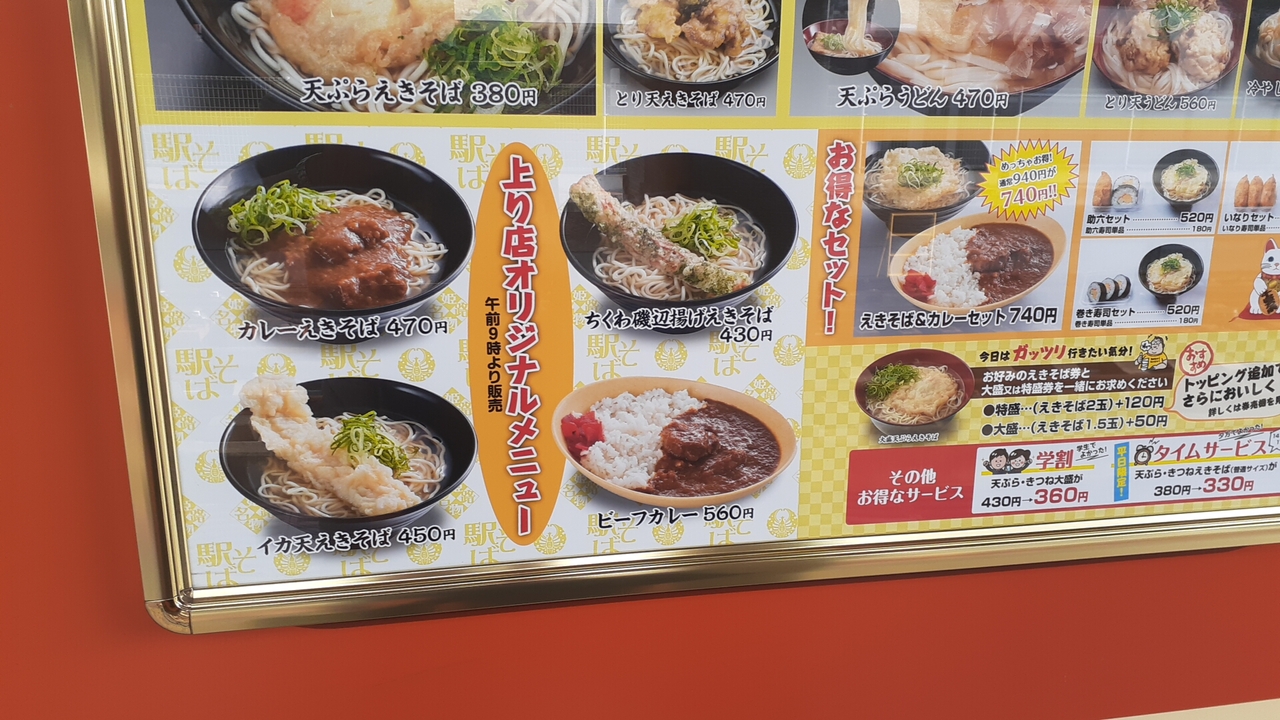 2020年8月25日の16時すぎにえきそばのきつねを頂きましたが、通常360円程度するところがタイムサービスで320円と40円お得に頂けたのでラッキーでした。