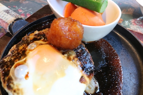 ソースはテーブルでかけてくれます。卵と大根おろしがのっていました。