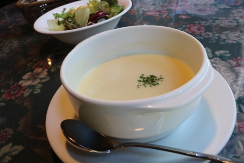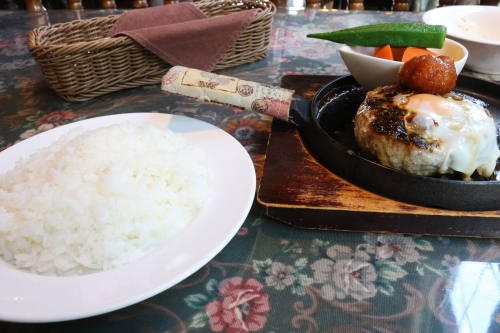 和風ソースのハンバーグをいただきました。スープとサラダが付きました。