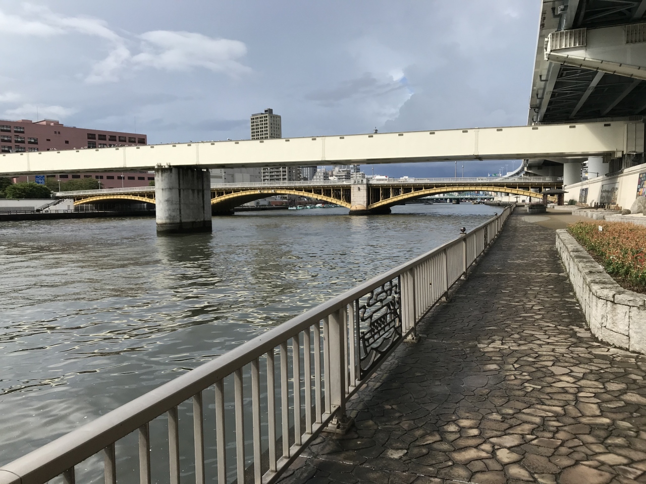 隅田川沿いは、川に沿ってウォーキングやジョギングが楽しめるように、ちょっとした休憩スペースを整備したりするなどして、ちょっとした公園のような側道が続いています。