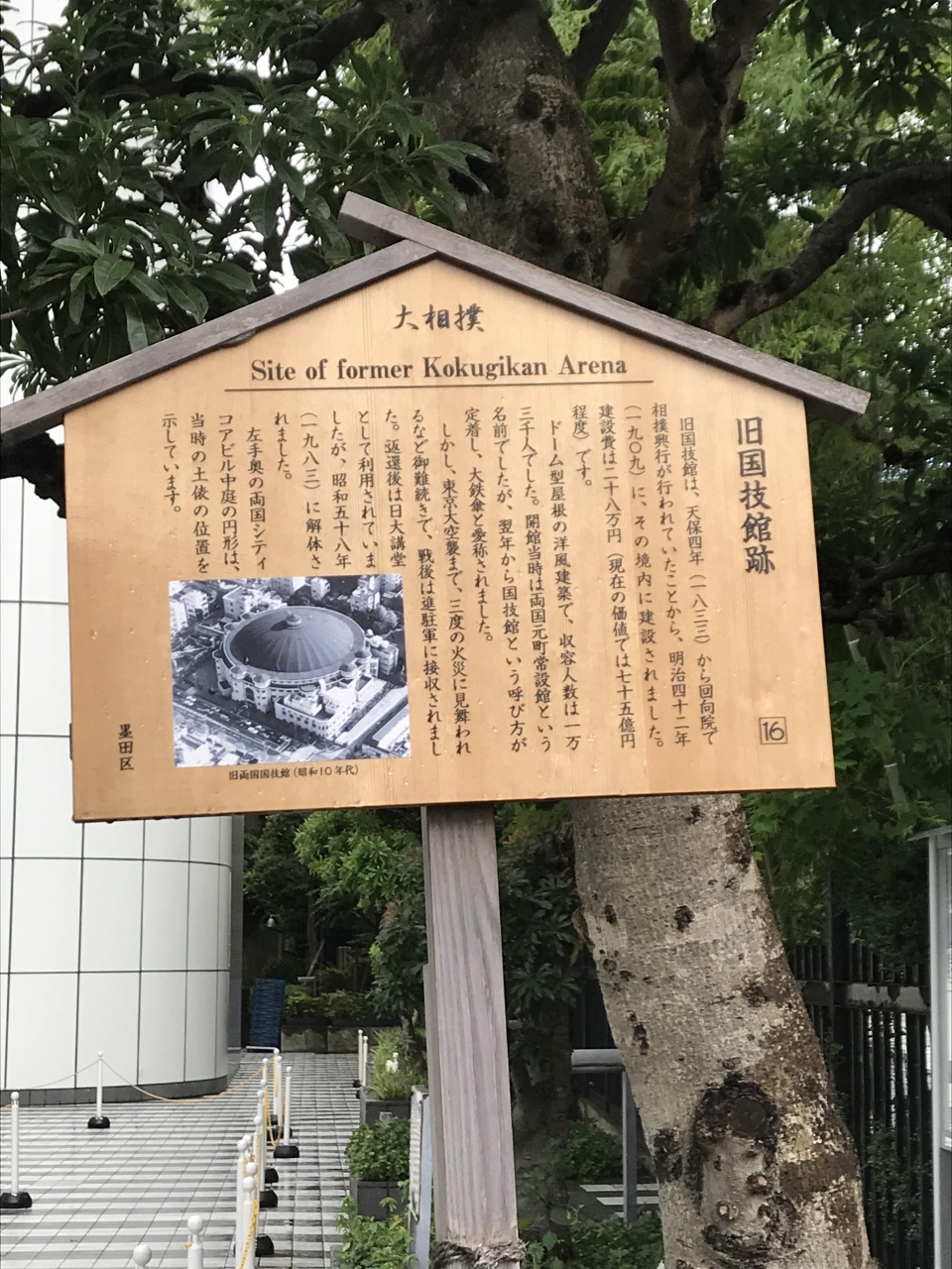 そこが、昔の国技館の跡地だそうで、看板が立っていました。