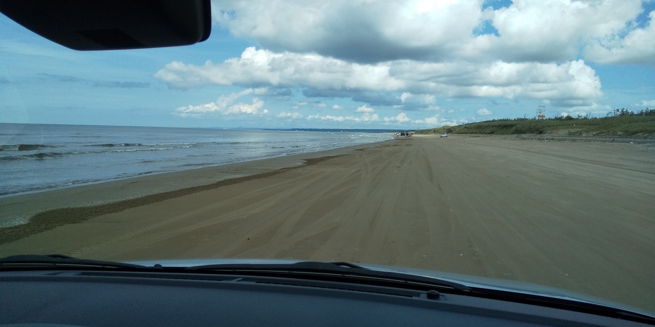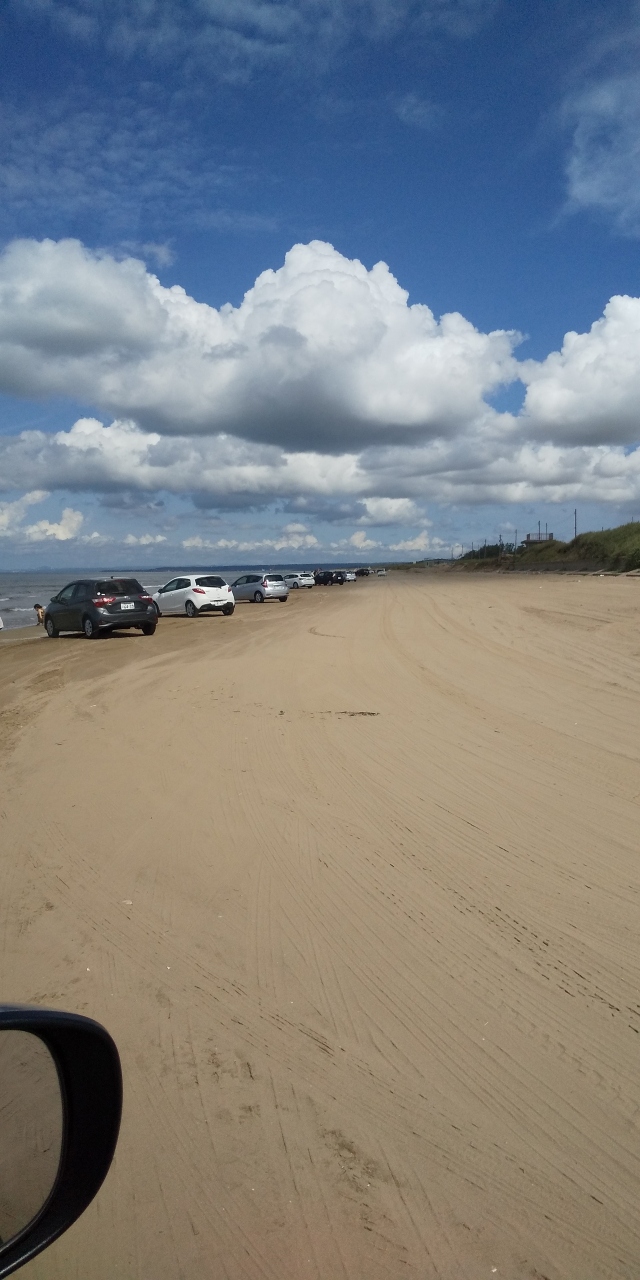 千里浜を砂浜をクルマで走れるドライブコースです。砂の粒子が細かくしっかり固まっている事で、クルマでも走る事が可能だということだそうです。