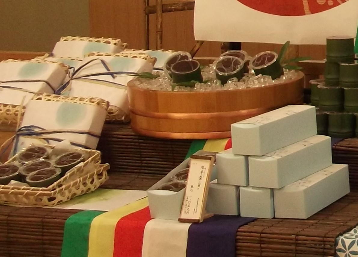 横浜高島屋地下にある、滋賀県・大津の和菓子店のショップです。羽二重餅を小豆の形の残った餡でくるんだ「あも」が人気ですが、夏の季節に合わせた水ようかんも販売されていました。こしあんはほどよい甘さで、夏の涼菓を味わえました。