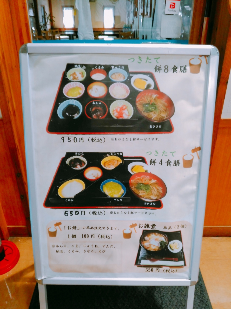 道の駅内にあるレストランでは、カニばっとや餅もいただけます。