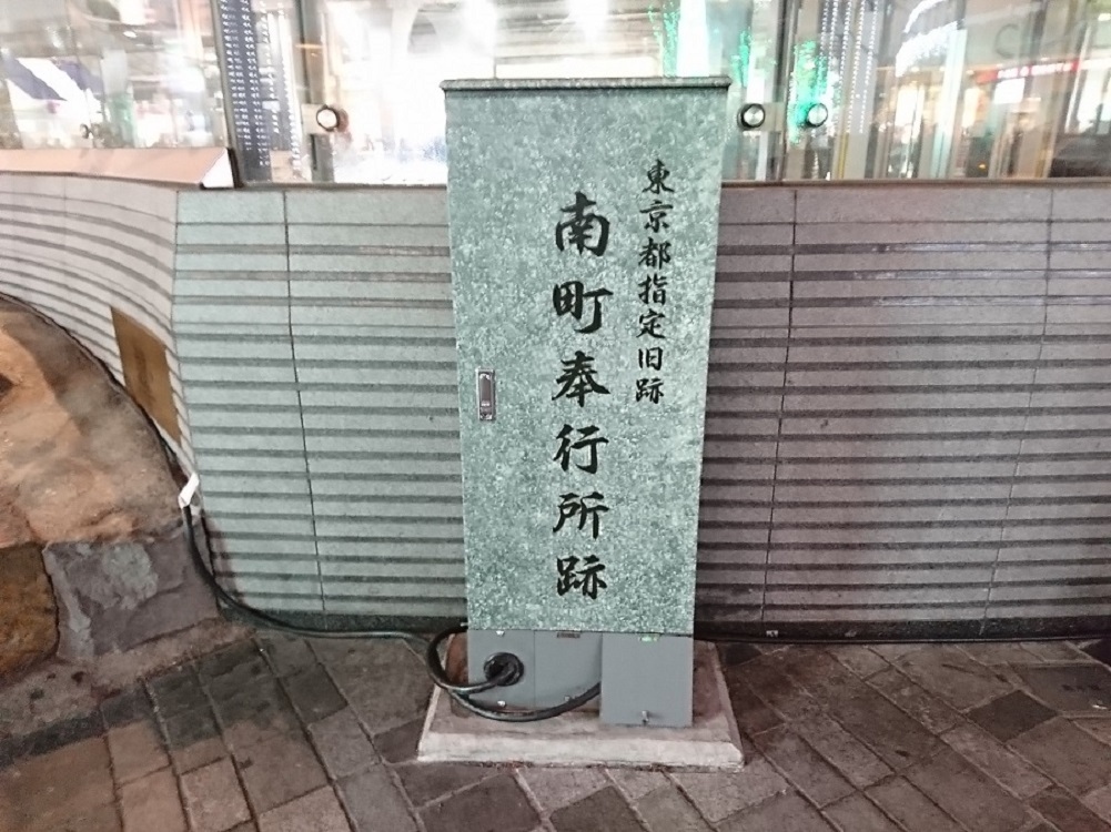 JR山手線有楽町駅前のマルイ前の広場に南町奉行所跡碑があります。時代劇の大岡越前で有名な南町奉行所が建っていた場所です。広場に石碑があるのですが、時々広場で行われるイベントのテントなどで隠れてしまう場合があるので、そういう時は探すのが大変です。