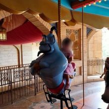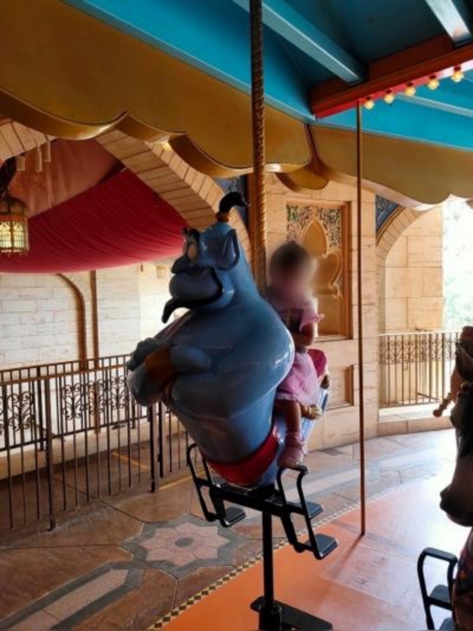 ソーシャルディスタンスで空間をあけて乗らないといけないので、乗れるものと乗れないものがありした。人が少なかったので子供が乗りたいと言っていたジーニーには無事乗ることができました。二階建てのカルーセルは珍しいですよね、ついつい二階に上がってしまいます。