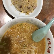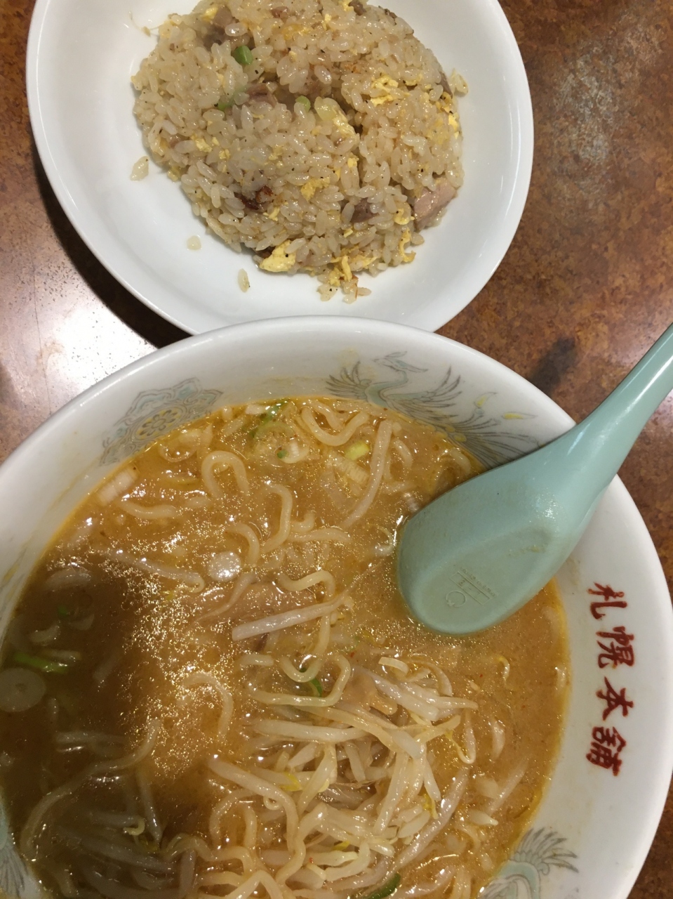 食券を購入する先払いシステムでした。半チャーハン250円プラス味噌ラーメン710円のセットを食べました。濃い目のスープで麺は黄色い縮れ麺でした。もやし、ネギ、メンマが添えてありましたがチャーシュー等の肉類は入っていませんでした。半チャーハンは塩加減が多かったですが美味かったです。