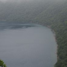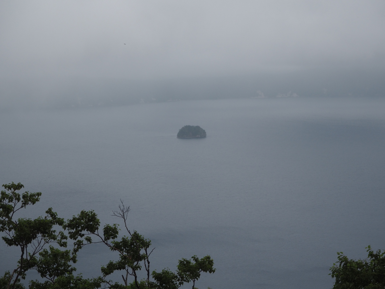 摩周湖の東側に摩周岳があります。山腹は木々の緑に覆われた感じですが、山頂付近はとがった感じの山です。第1探訪台から見ると、摩周湖の中央部にある中島のすぐ向こう側に見えるような感じなります。摩周湖周囲は人工物は何もないので、手つかずの自然が感じられる場所です。