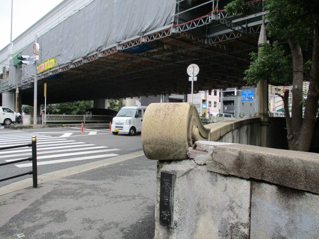 末吉橋は地下鉄松屋町駅よりほど近い場所、東横堀川に架かる橋です。江戸時代に南蛮貿易で活躍したと言われている豪商末吉孫左衛門が架けた橋だと伝えられ、その人の名前が橋の名になっています。車の往来が多い橋です。橋の欄干がカールしているのがちょっとおしゃれと思いました。