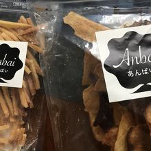 鹿児島産のさつま芋、じゃがいもを使ったチップス、芋けんぴが人気だそうで、試食させていただいた中からさつま芋ミルク芋けんぴとさつま芋ロングチップスをいただく。どちらもさつま芋の味が濃くとても美味しい。またさつま芋ロングチップスは甑島(こしきしま)の塩を使っており、柔らかい塩の味がさつま芋の味を引き立ててくれる。