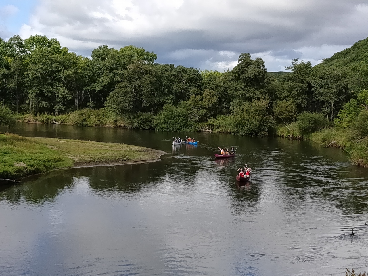 釧路市の中心幣前橋から、釧路湿原を蛇行する様子をノロッコ号から、屈斜路湖からの流れ口をバスから眺めました。高低差が低く上流から河口までの154km終始嫋やかな流れが続きます。まさにこの地の母なる川ですね。