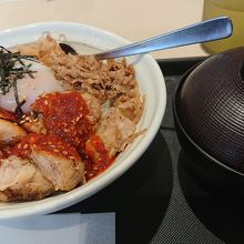 期間限定メニューで甘唐辛子のトロたまごろチキコンボ牛めし並盛650円(税込)をやっていたのでこちらをチョイス。