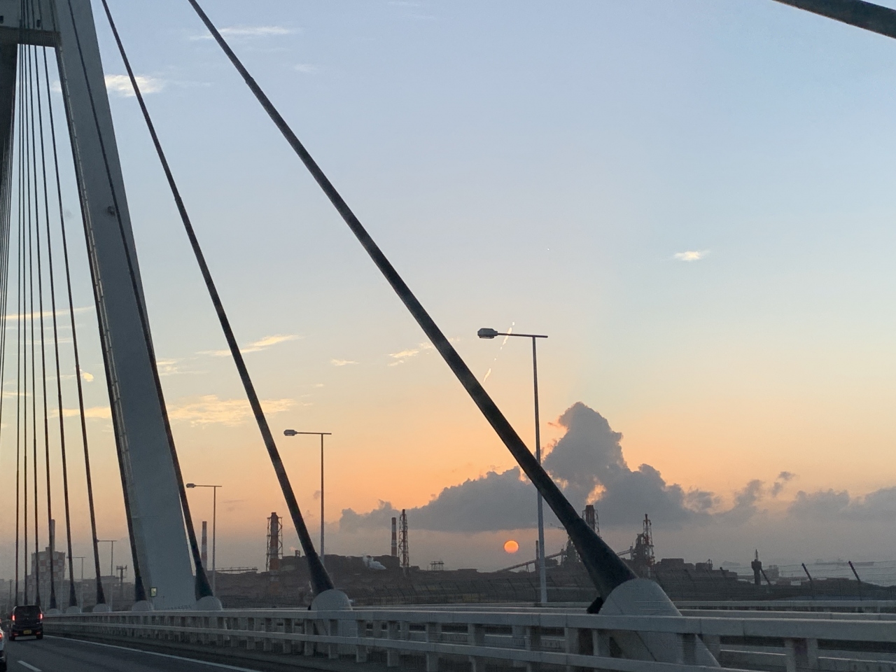 早朝にもかかわらずかなりの車が走っていたのは9・10と連続で続いた台風の立て直しのための朝で活気も感じることができました。