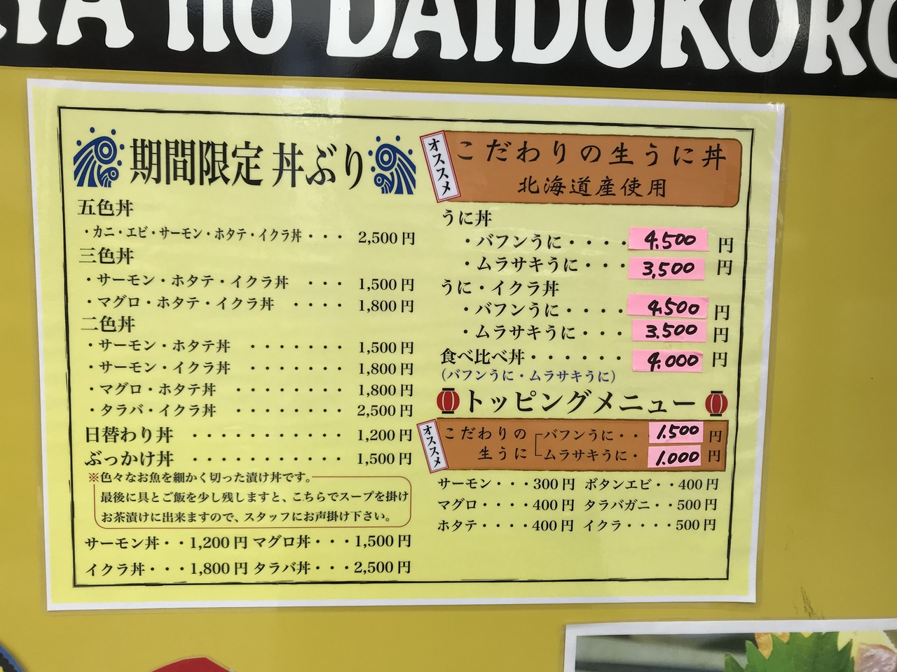オプションでウニを乗せるか、ウニメインの丼しかない。