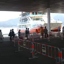 宮島フェリーは宮島口桟橋と厳島の宮島桟橋の間を約10分で結んでいます。