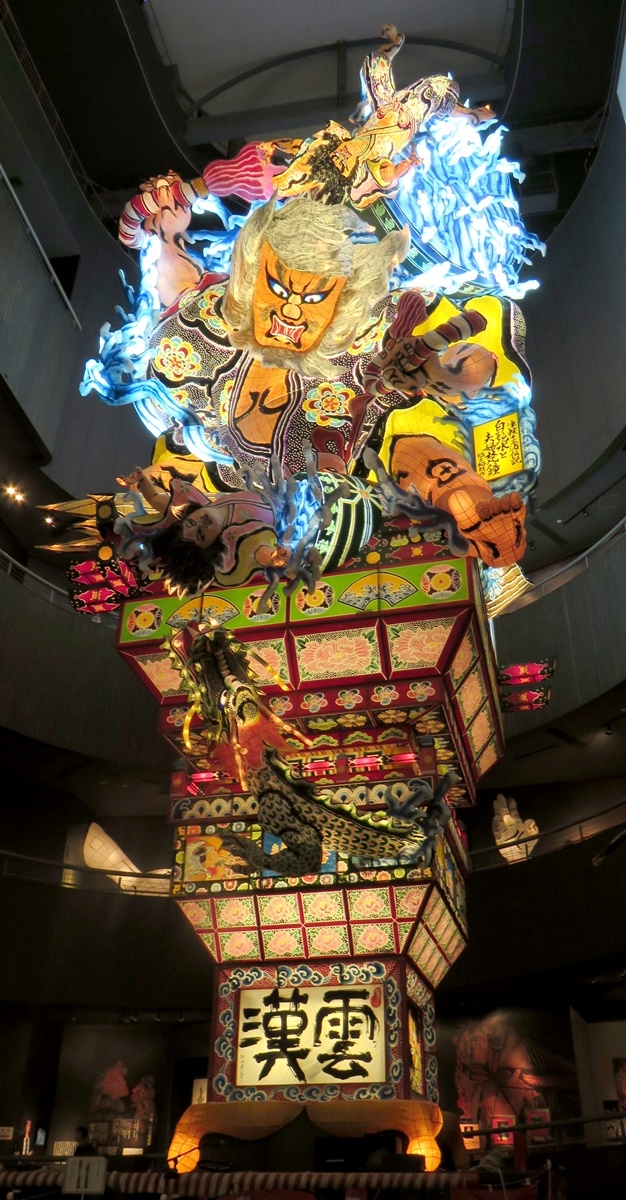 素晴らしい! 入場料を払って見るだけの価値があります、高さ23mの巨大な山車。1~4階吹き抜けの展示室に過去3年分の佞武多が堂々展示されています。五所川原の街はこの大きな佞武多のために電線を地中に埋め込んだのだとか。正面だけでなく左右、裏側とこれでもか!と色鮮やかな装飾が施されており、リアルタイムで練り歩いている姿を想像するとゾクっとします。