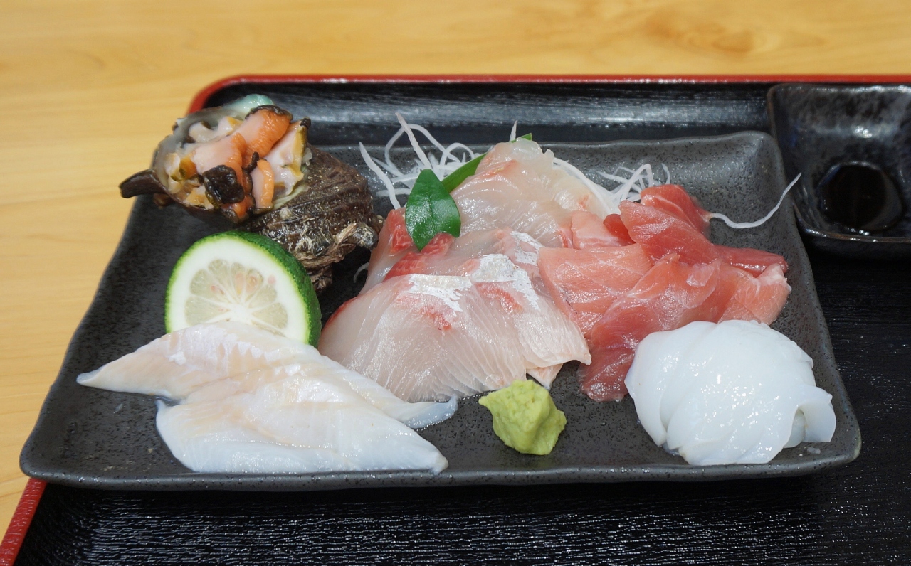 サザエ・イカ・アナゴ・ヒラス・マグロ、どれも対馬産で新鮮・プリプリ。