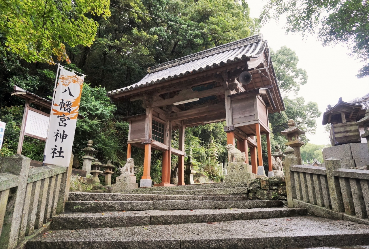 背後の山は清水山といい、神功皇后は神霊宿る山とし、八幡神をお祀りしたとあります。