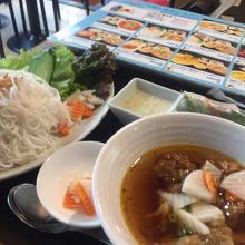 ベトナム風つけ麺であるブンフォーを食べましたが、つけ麺も米粉の麺なので、少し変わった味です。