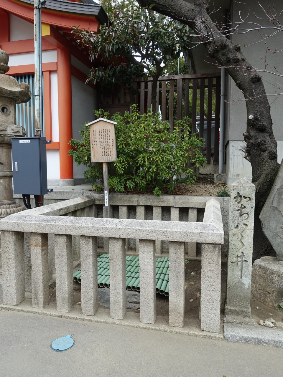 生田神社の楼門の手前、楼門に向かって右手にある井戸です。約800年前、源平合戦の時に、梶原景季がこの井戸の水を汲んだと言われる歴史ある井戸です。井戸そのものは覆いがかぶされていて見えないのが残念ですが、日本最古級の神社とされる生田神社の歴史の一端を感じることが出来ました。
