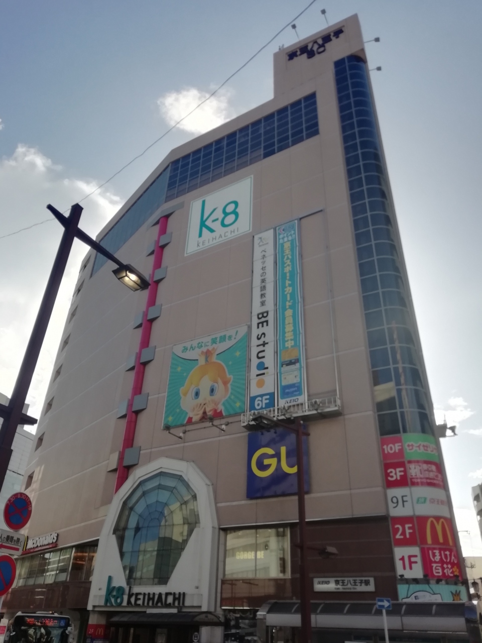 京王八王子駅にあるKEIO系列の複合ショッピングセンターで、地元では「ケイハチ」の愛称で親しまれています。センターにはファッション衣料や飲食をはじめ色々なテナントが入っており、今人気のGUも。10階には規模は小さいですがレストラン街もあり、喫煙室も設けられています、是非。