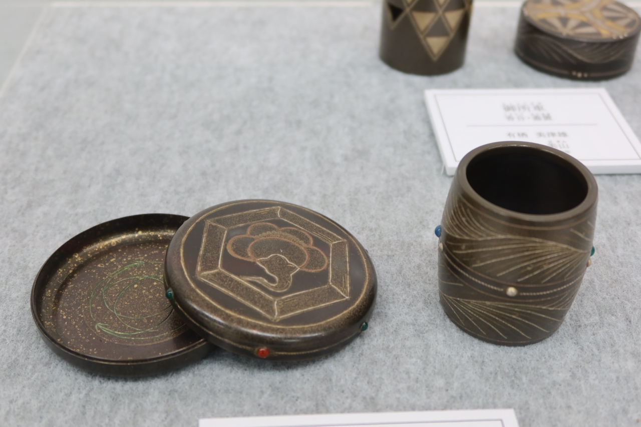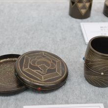 第1展示室にはに日用品や調度品が置かれていました。個人的には香合入れの鋳物「松竹梅」が見事でした。