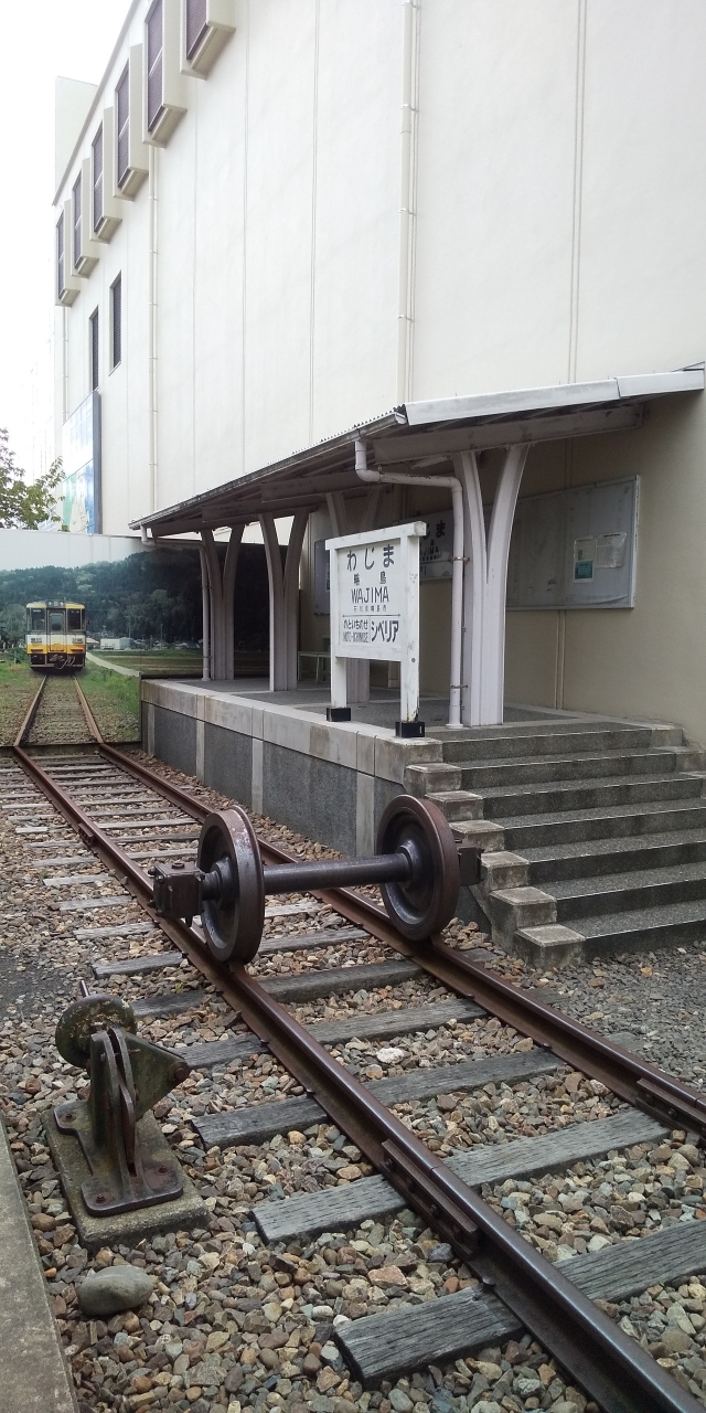 線路があった場所には、ホームや線路の一部が残されていて記念写真のスポットになっています。