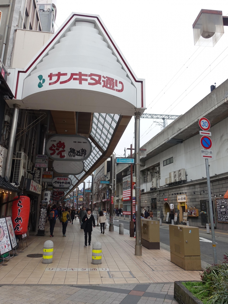 サンキタ通り商店街は、阪急三宮駅の北側、線路に沿うように東西にのびる商店街です。神戸牛のお店などが点在する生田ロードなどに比べると、庶民的なお店が多いと感じます。B級グルメ的なお店も多く、思わぬ発見がありそうな、そんなワクワク感もあります。