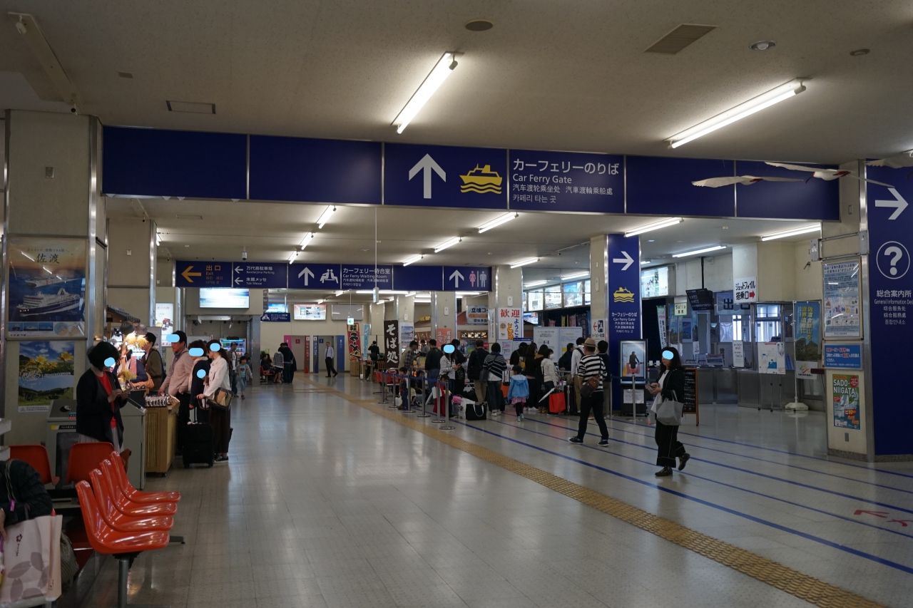 GWに佐渡に行くために利用しました。新潟駅到着からジェットフォイルの出船まで1時間半ほどあったので、どう過ごそうか考ましたが、とりあえずバス乗り場へ。バス乗り場もタクシー乗り場も物凄い大行列、タクシーなど1台もいません。どうやらある宗教団体の新潟大会のようで。会場のある新潟港周辺も大渋滞・・・結果、何とか出船の15分前ぐらいにはバス到着したのですが、当然ランチなどの時間なく売店でお弁当とお茶を買ってあわてて乗り込みました。通常は、タクシーで10分程度着くようですが、こんなこともあるのでご注意を。