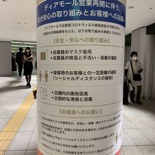 入り口に 営業再開に伴う安全安心の取り組みとお客様へのお願い が書かれていました