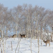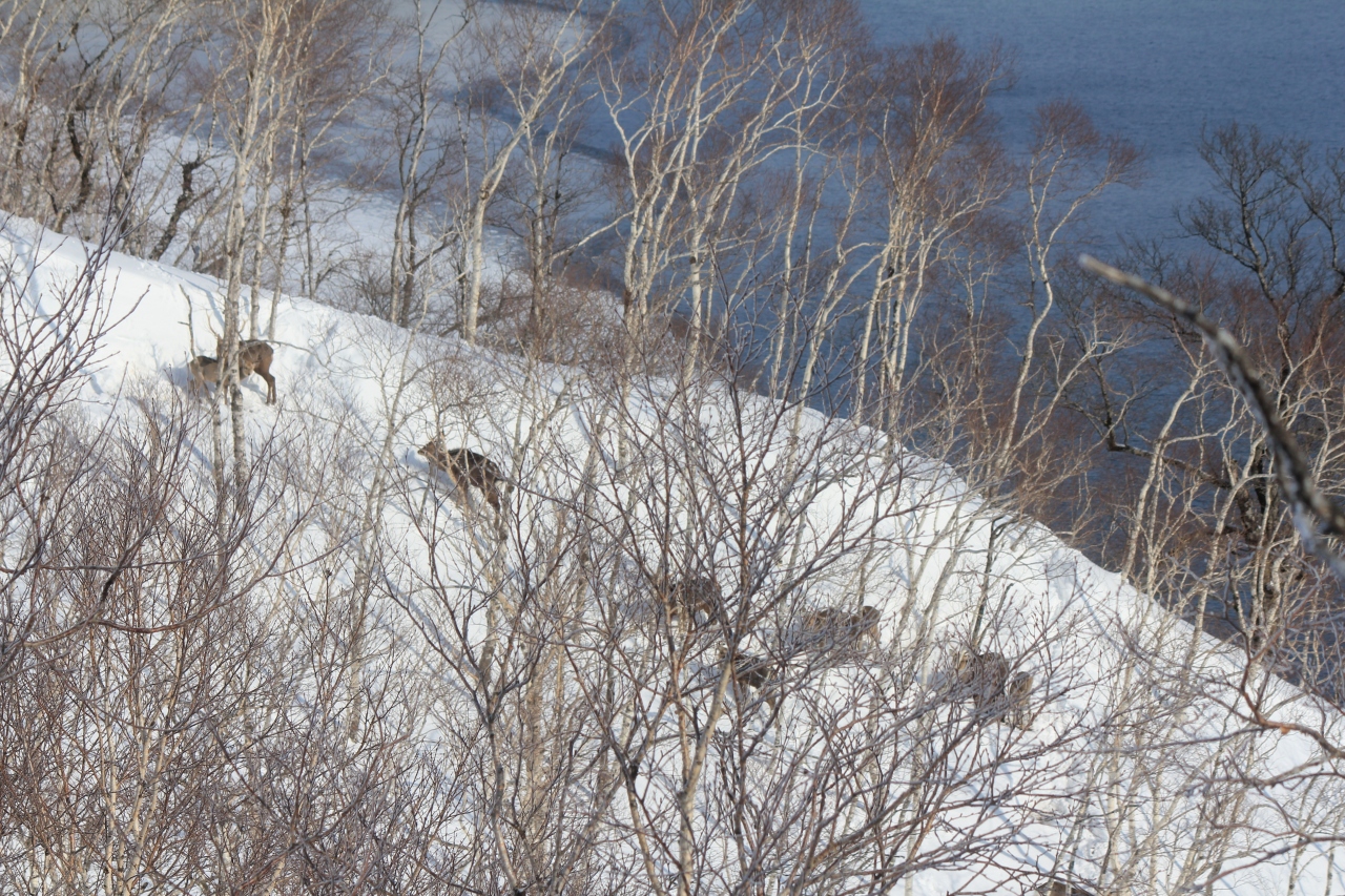また厳しい寒さの中の雪の森の中にはエゾシカの群れを見ることもできました。