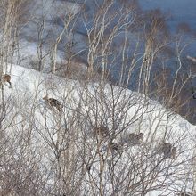 冬の摩周湖 雪の中には鹿の群れを見ました。