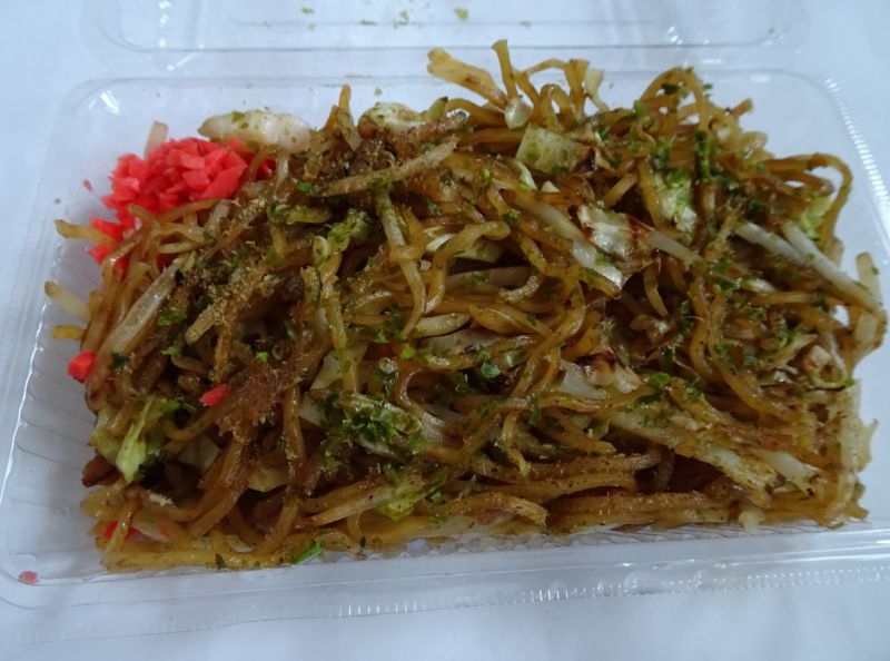 具はキャベツ、モヤシ、肉かす。ノボリが立っているだけあって、正式な富士宮焼きそばでした。