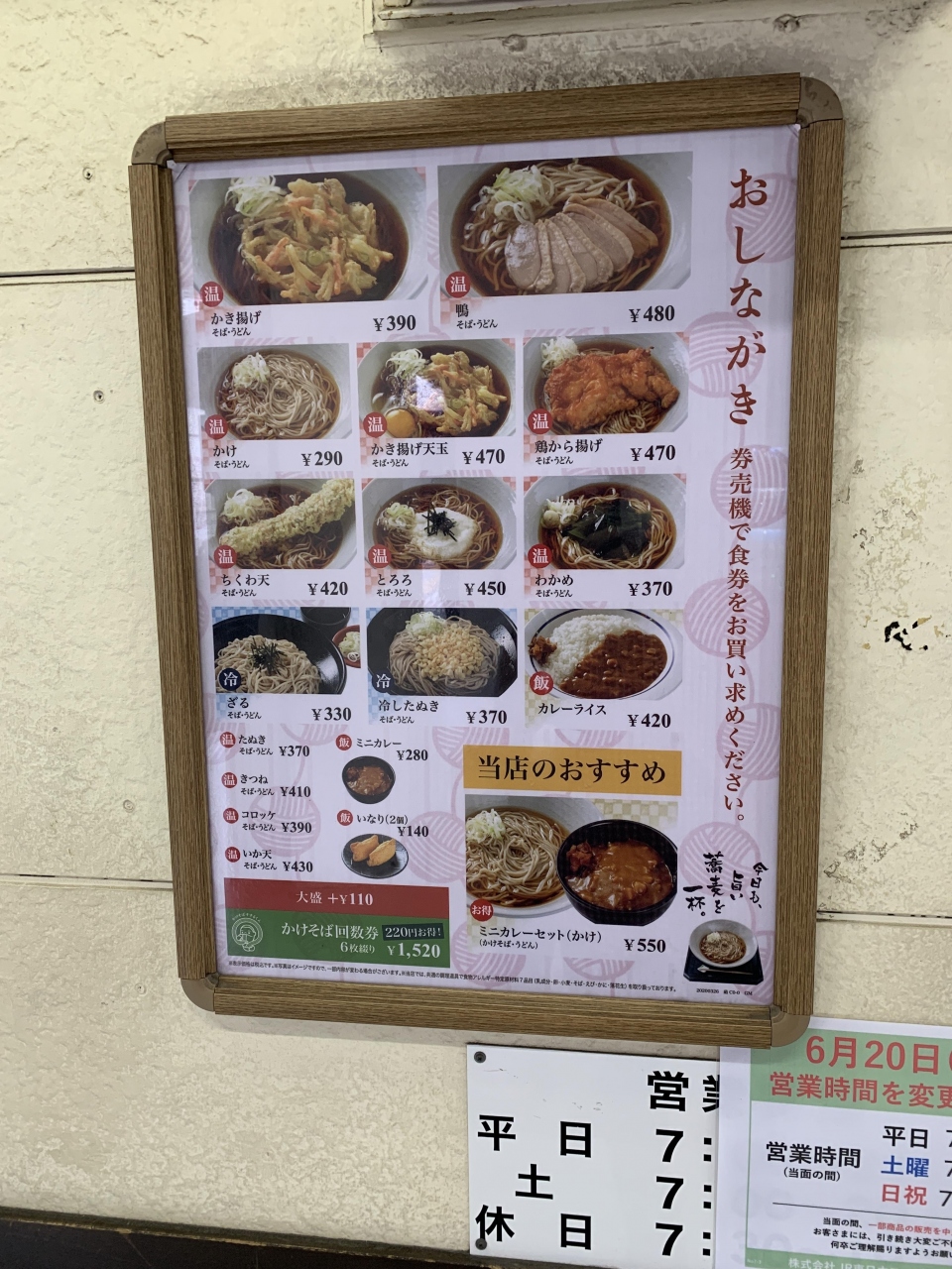 かき揚げ蕎麦が300円台なのは財布に優しい上にsuicaでさっと支払いができるのが嬉しいですね。