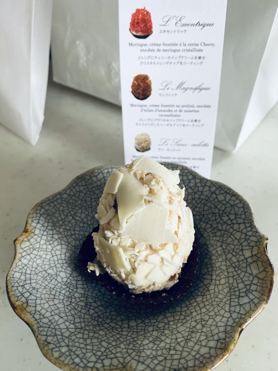 メレンゲ菓子は甘く重そうであまり得意ではないのですが、せっかくなので購入。店名にもなっているメルヴェイユはフレーバーが何種類もあり迷います。食べてみると想像よりも全然軽く、いい意味で予想外でした。すごく美味しい!ってわけじゃないけど程よいです。