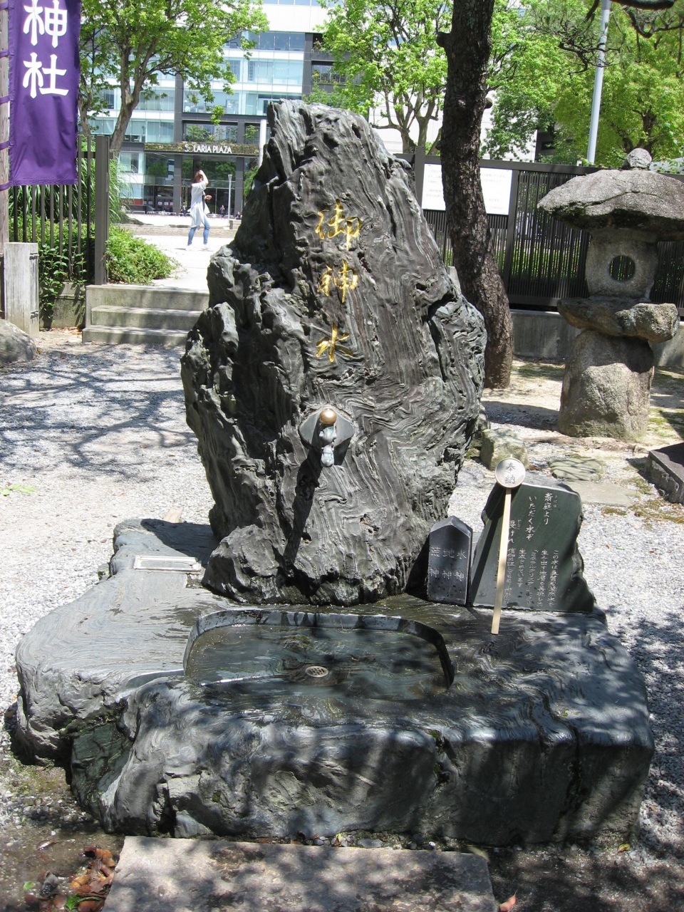 境内にある御神水は、良質な天然水を生み出す地層を再現した水が出てきます。