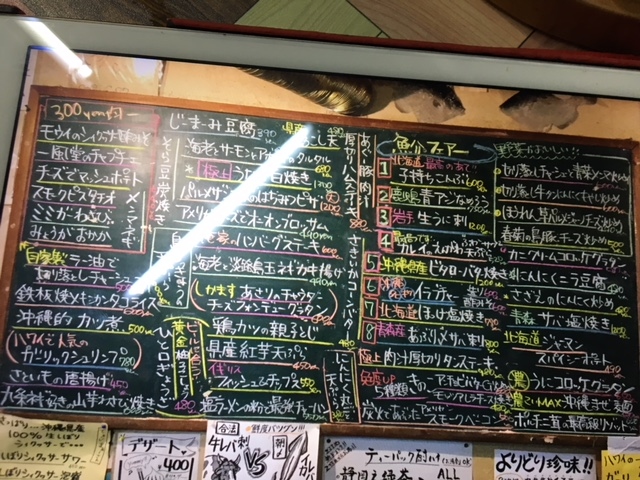 沖縄旅行の初日の夕食で利用しました。グルメサイトでとても人気店で予約もなかなか取りにくい、とのことでしたが、条件付きで取れました。が、個人的には・・・のお店ですね。予約時、室内は取れないけど店頭のオープンスペースならOK、とのことでしたが、真夏の蒸し暑い夜だったため、入店時再度、室内が空いていないか確認したら、つづき部屋になっている店なら空いているよ、と言われ入店したところ、なんと倉庫みたいな場所。でも地元の方が楽しそうに飲んでいたので、冷房も効いているし良いかなと思ったのが間違いでした。本当に倉庫みたいだし、店員は目の前で皿洗いしているし、注文は全く聞きに来ないし、散々でした。グルメサイトを過信してはダメですね。二度と行きません。