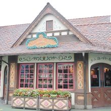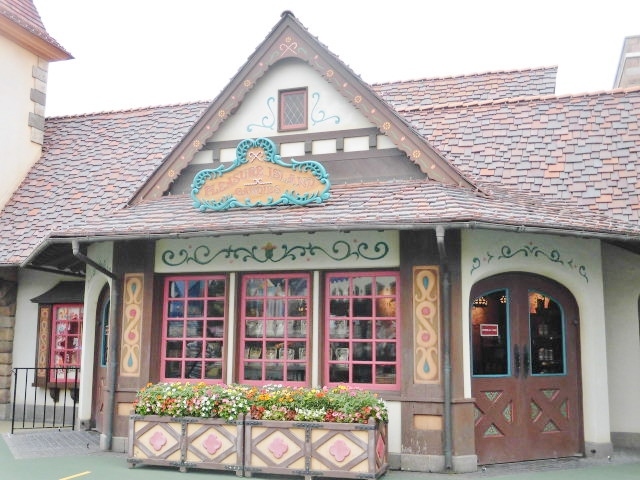 東京ディズニーランドのファンタジーランドにある、お土産ショップです。店内に入ると、大きなキャンディーのデコレーションが目をひきました。