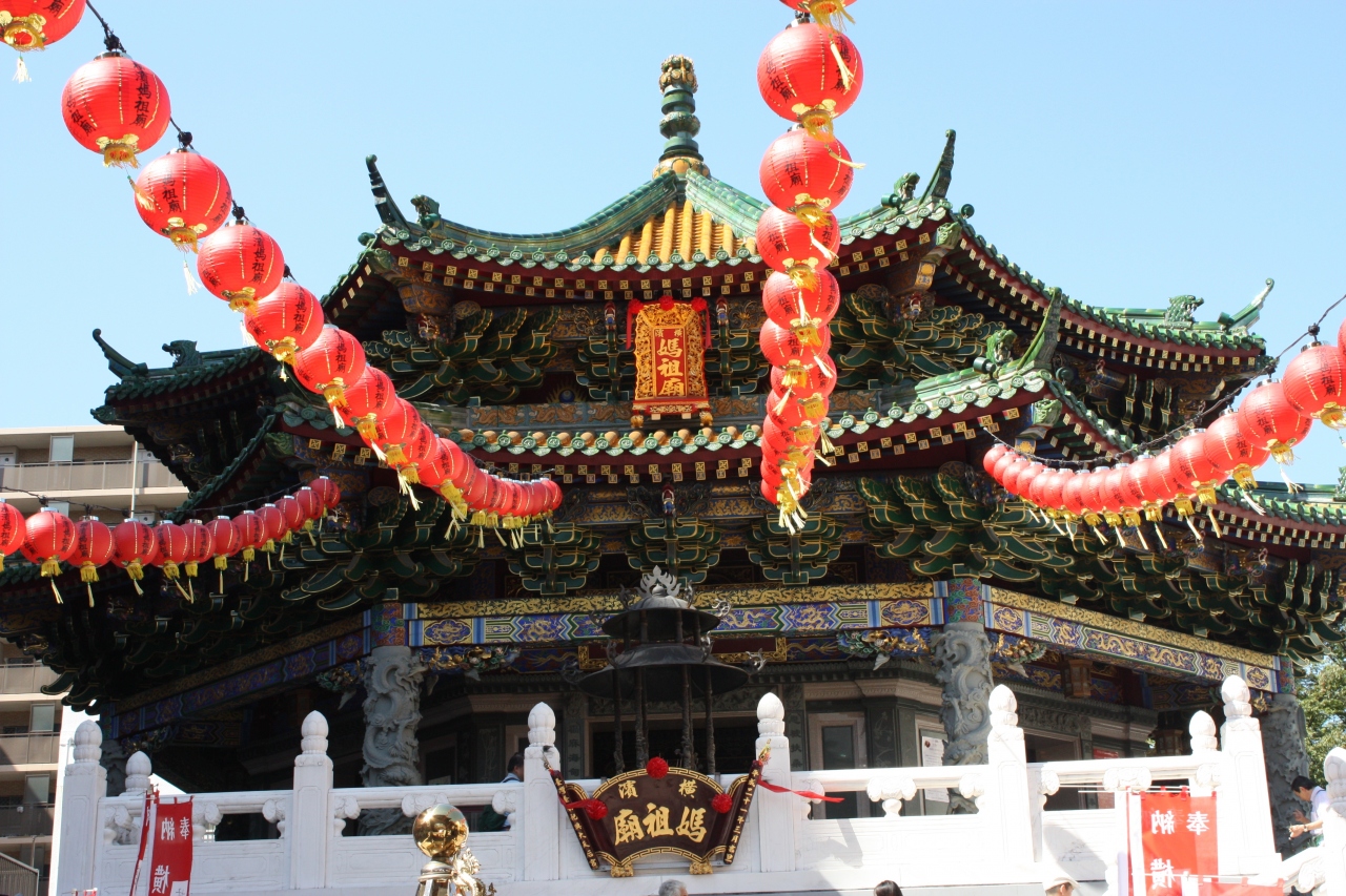 「媽祖」とは、航海の安全を守る女神のことで、中国の湾岸都市や台湾、華僑が住む東南アジアでよく目にします。極彩色の建物が中国っぽいです。横浜中華街の中で存在感がありますので、立ち寄ってみましょう。たくさんの香炉が待っています。