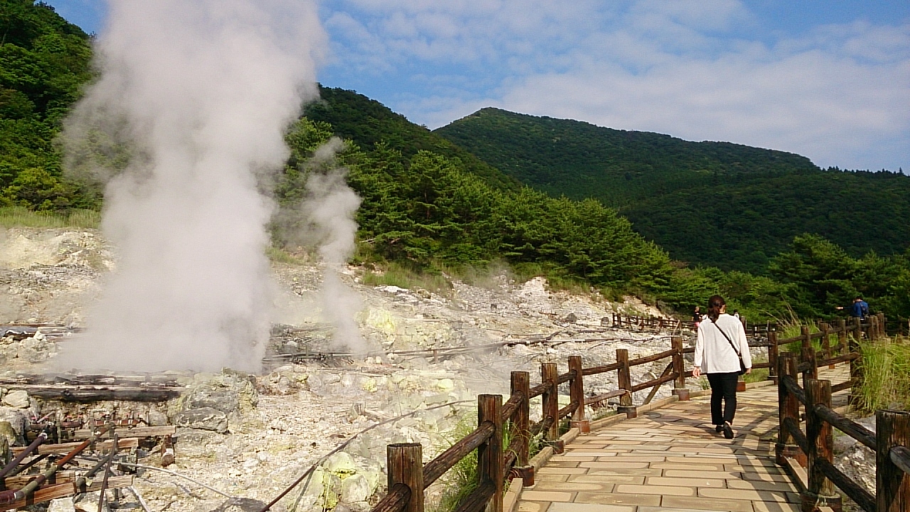 荒涼とした大地から湯気が噴出していて、エネルギーが感じられます。