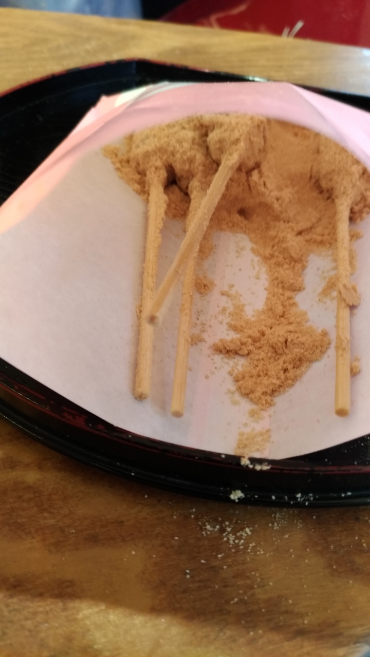 仲見世にある「きびだんご」を実演で販売している。ほかに抹茶ドリンクもある。夏はかき氷もやっているがとにかく食べるスペースがせまいです。浅草は食べ歩きのイメージありますが、実は禁止してます。たしかに食べ物をそのへんにもって店にはいられたら商品とかよごれますし、道路もよごれますよね。お店の横に食べるスペースがあります。ちなみに午前中で雨が結構ひどかったので、だれも食べるスペースにいなかったので、コロナ感染の考えからも混んでいたらたべなかったですが。持ち帰り用もあるので、混んでいたらそういうのもよいと思う。きなこがたっぷり