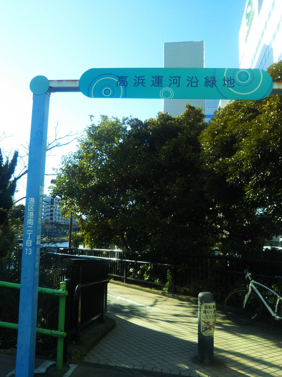 東京のJR品川駅港南口からから東京海洋大学方面に歩いて行くと高浜運河があります。高浜運河の水路に沿って高浜運河緑地が整備されています。ジョギングをするのに川沿いの気持ちの良い遊歩道が続き、都会のオアシスでした。